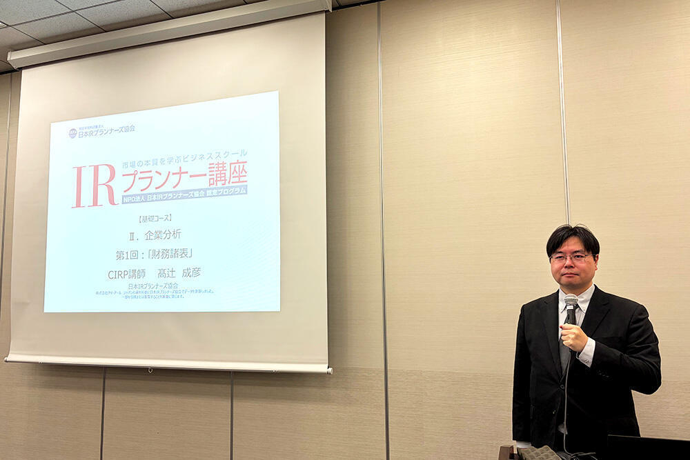 2月19日(木)、経営学部経営学科の髙辻成彦准教授が、NPO法人日本IRプランナーズ協会が主催する資格養成講座において、IRプランナー基礎講座の2日目「企業分析」科目で、社会人向けに講演を行いました。