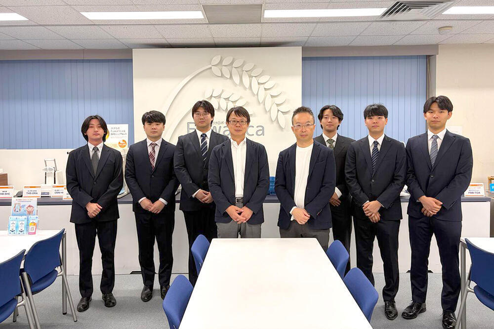 写真中央左から秋田一徳上席執行役員、栗原隆之介執行役員、左右は髙辻ゼミ2期生