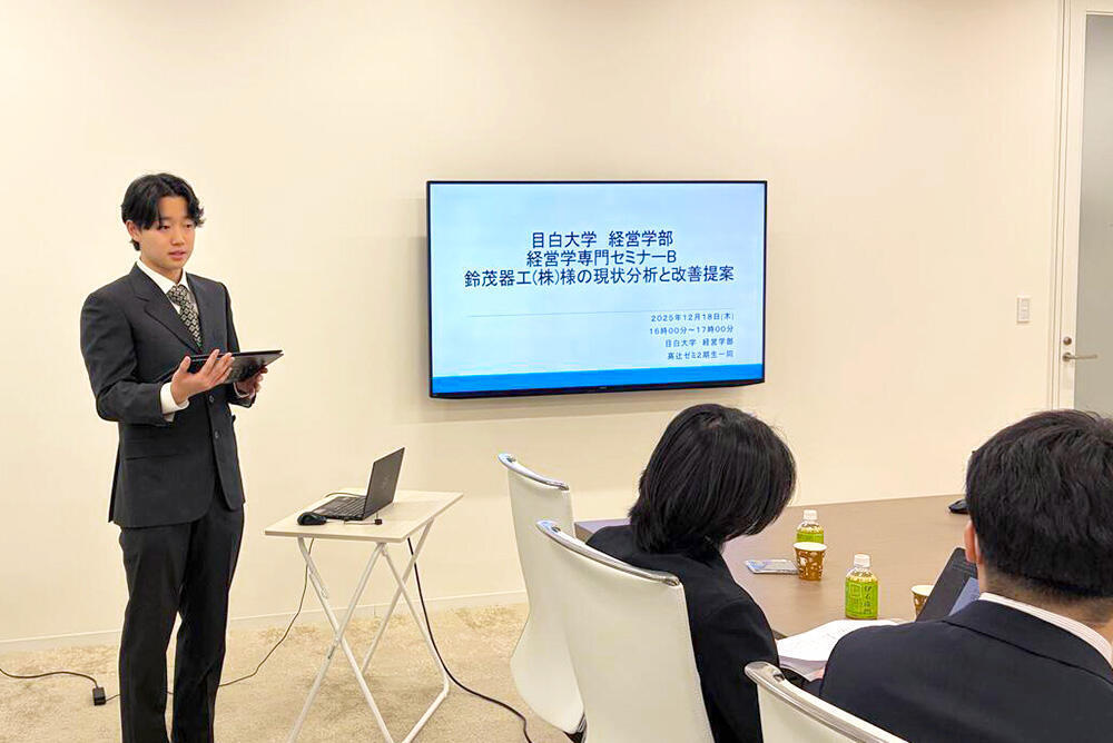 12月18日(木)に経営学部経営学科の「経営学専門セミナーB」(3年生ゼミ)にて、髙辻成彦ゼミ2期生が企業プレゼンテーションを行いました。