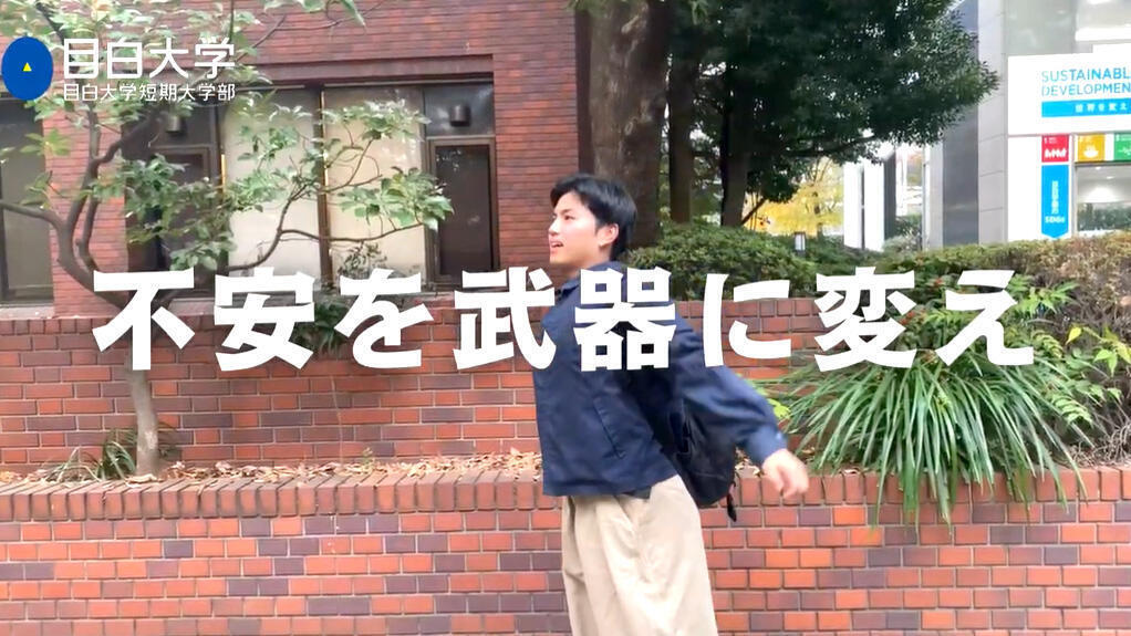 動画広告の題材は「目白大学の学生募集」で、YouTubeへの出稿を想定します。少人数のグループに分かれ、市場分析、競合との強み・弱みの比較、ターゲットペルソナの設定などを行った上で企画を行います。その後、企画を踏まえてそれぞれにアイデアを出し合い、工夫をこらして動画広告を制作しました。