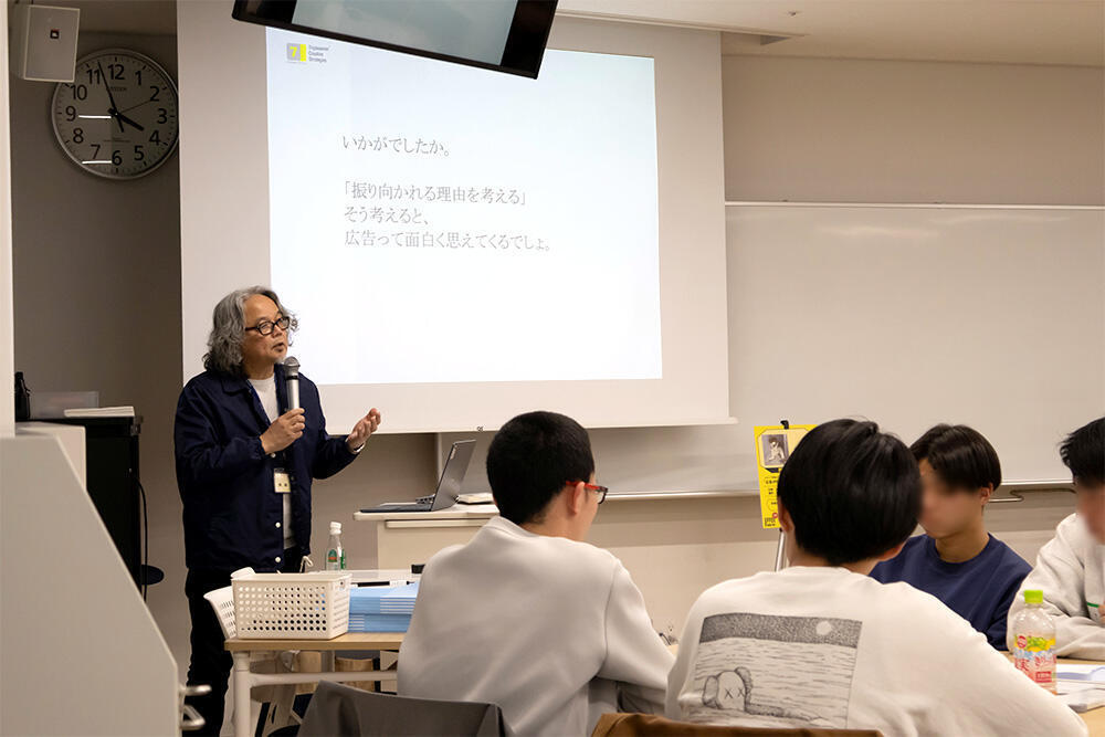 メディア学部メディア学科では、去る2月、広告界の第一線で活躍し、数々の国際的な賞を受賞されてきた福田敏也氏(777CreativeStrategies代表取締役 / 大阪芸術大学元教授)による公開講座「広告IPPONグランプリをやってみる」を開催しました。