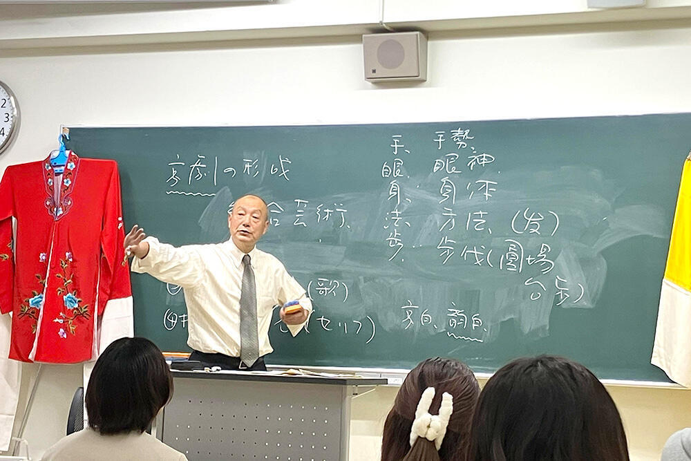 11月13日(木)、外国語学部中国語学科の「ベーシックセミナー」で、中国の伝統演劇「京劇」をテーマにした特別講座「四功五法から衣装体験まで-魯大鳴先生と学ぶ京劇の世界」を実施しました。