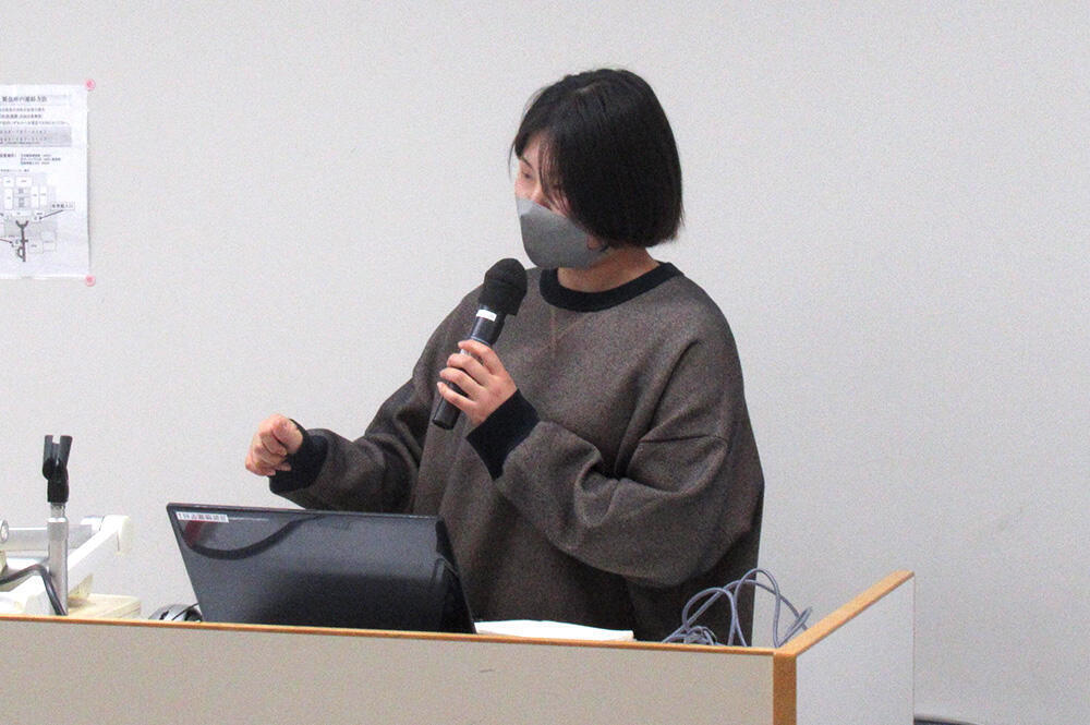 卒業研究発表会で研究成果を発表する4年生