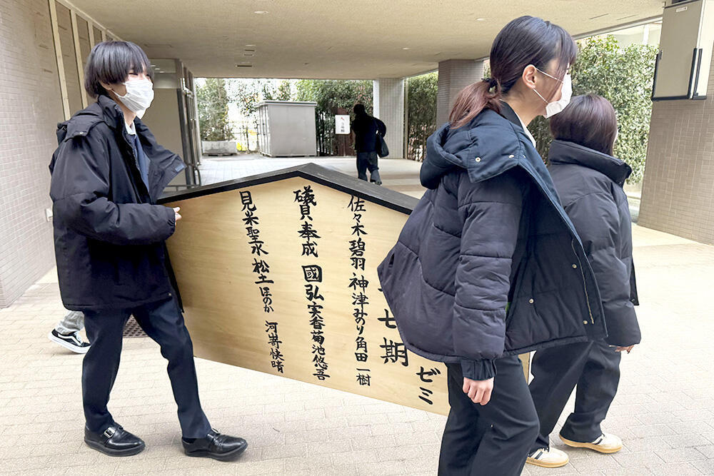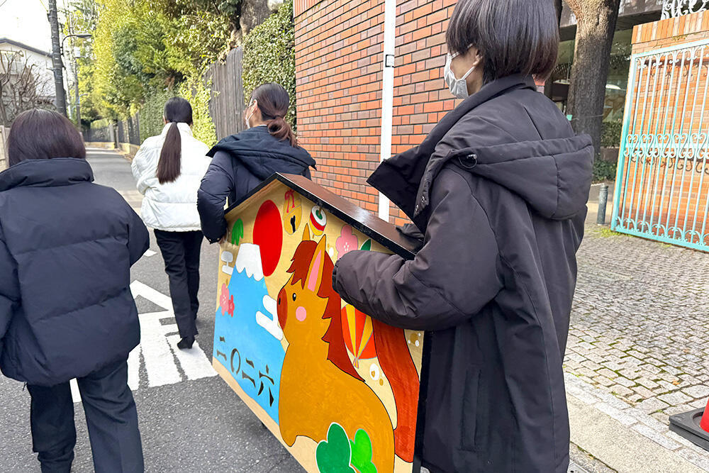 12月23日(火)、人間学部子ども学科おかもとみわこゼミが、制作した巨大絵馬を新宿キャンパス近隣の中井御霊神社に奉納しました。