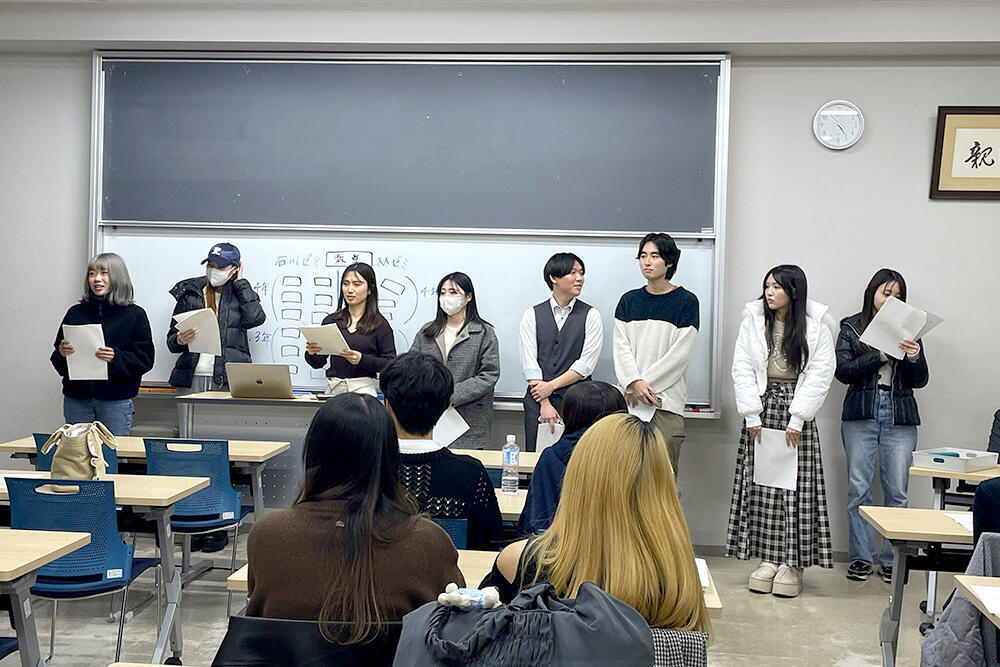また、ゼミ論文に取り組んだゼミでは、「児童虐待の要因と対策について」、「不登校児童生徒の増加要因についての一考察ーサブカルチャー・SNSの影響力に注目してー」、「多角的視点から見る高齢者ドライバーによるペダル踏み間違い事故の原因」、「子どもが子どもでいられるために ーヤングケアラー支援の課題と展望ー」、「ヒップホップによるエンパワメント、若者の生きづらさとラップの力」など、学生それぞれの関心を掘り下げて考察した報告がされました。