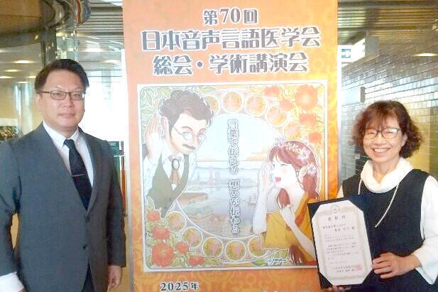 言語聴覚学科の春原則子教授と後藤多可志准教授が、日本音声言語医学会「第5回優秀論文賞(言語部門)」を受賞しました
