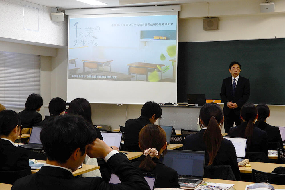 今年度も、春学期と秋学期の2回に分けて学内教員採用説明会を実施しました。人間学部児童教育学科2年生を中心に教職課程を履修する学生が参加しました。