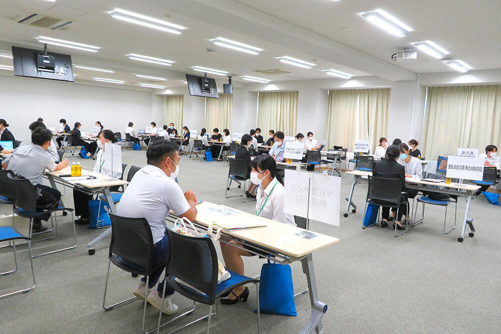 当日は残暑が厳しい中、39の病院や施設から59名のご担当者が大学までお越しくださいました。現場の皆さまから病院の特色や教育制度、やりがいなどについて丁寧にご説明いただき、学生たちは言語聴覚士としての将来像を具体的にイメージできたようです。