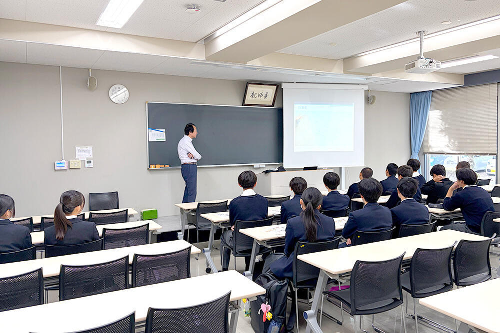 参加した高校生は、担当の峯村恒平准教授が行っている実際の大学の授業に参加し、在学生とグループワークを実践しました。午後は、課題に対して取り組み状況や発表を行いました。