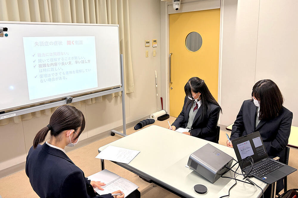 課題「失語症の定義と症状を調べる」の取り組み状況、ミニ講義、検査演習、体験授業