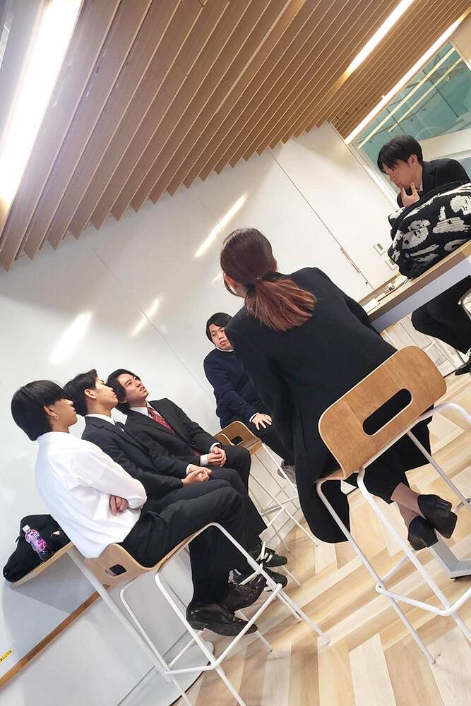 午後は大学に戻り、参加した授業についてそれぞれ報告し合いました。生徒が活動的に学習する授業の方法(アクティブラーニング)や、教師の役割について意見を交換しました。それぞれの学生が、自分の「教育」を探求しようとする姿が見られました。